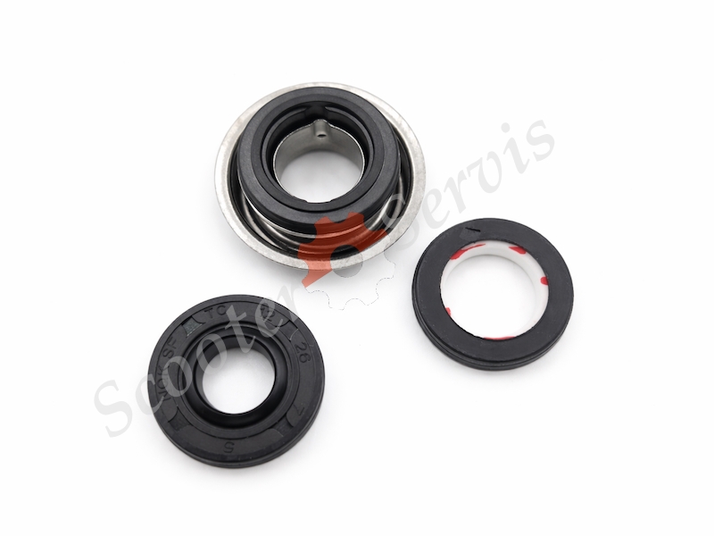 Механічне ущільнення (фібра): Складається з основного підпружиненого блоку та керамічного кільця в гумовій манжеті. Забезпечує надійне ущільнення вала помпи в середовищі антифризу.